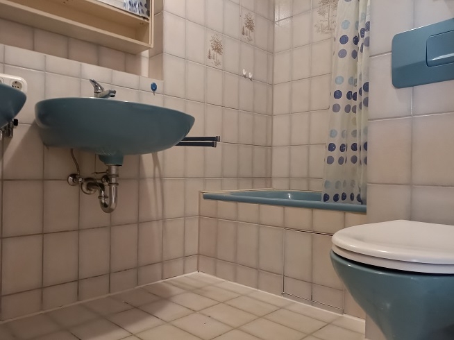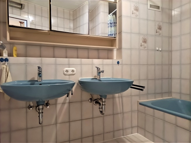 Bad inliegend, mit zwei Waschbecken, WC und Badewanne