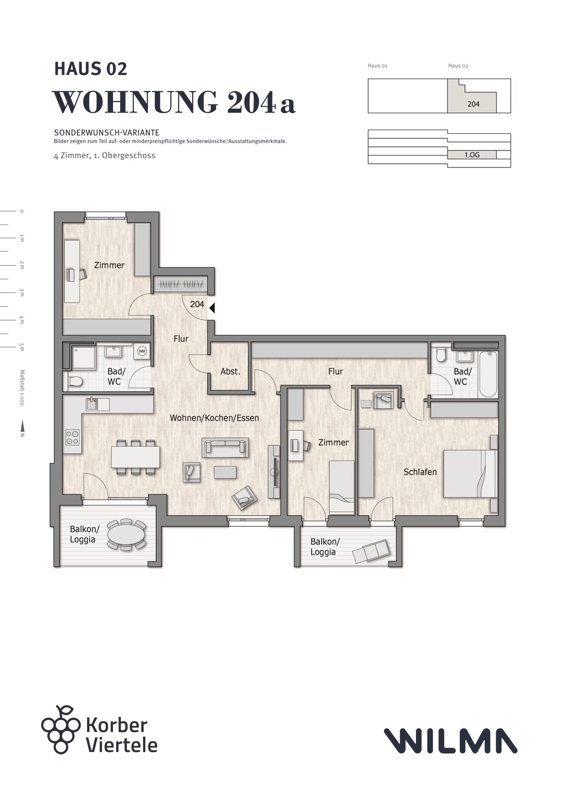 Bei diesem Objekt besteht die Wahlmöglichkeit zu einer Sonderwunsch-Variante mit Änderung von 5- auf 4-Zimmer-Wohnung zur Vergrößerung eines Schlafzimmer.