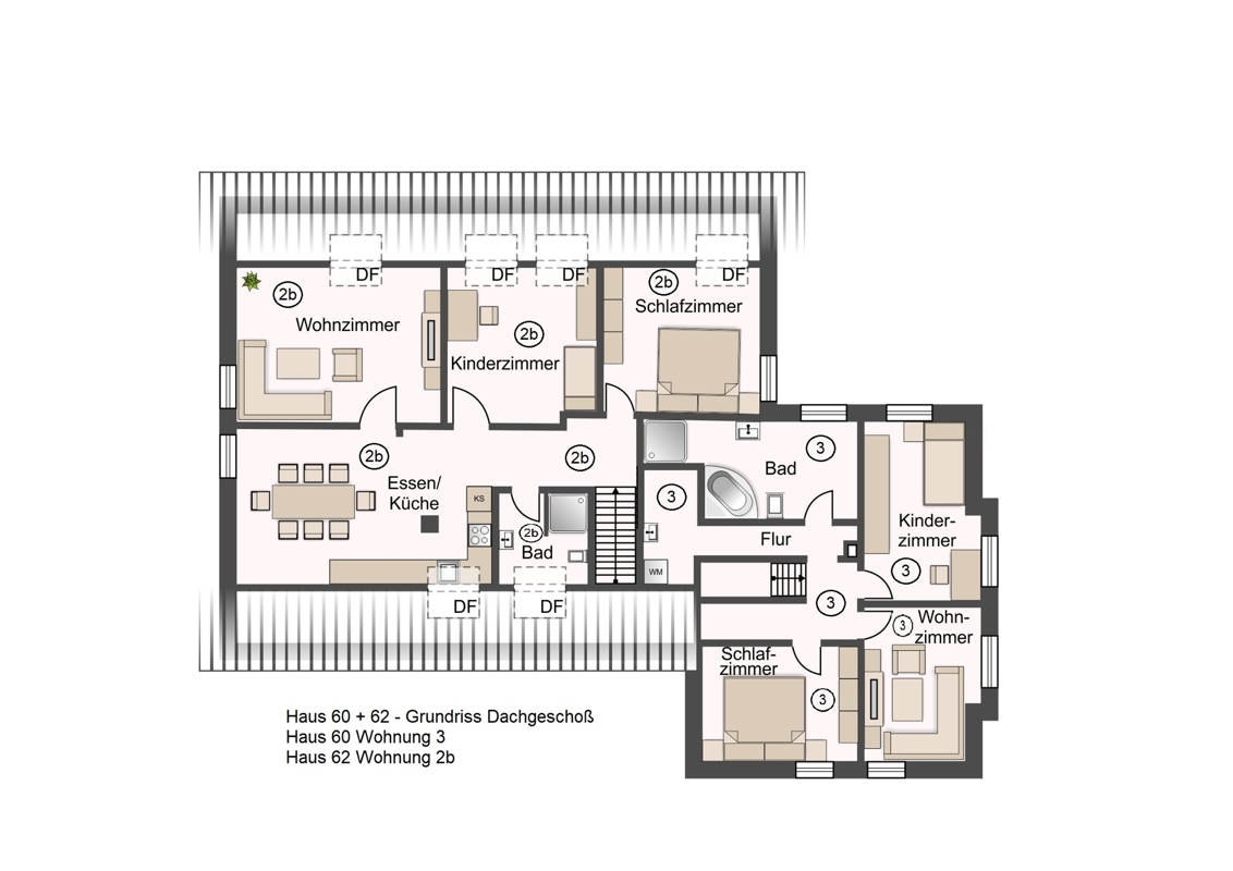 Wohnung Nr. 2a im Obergeschoss und Wohnung Nr. 2b Dachgeschoss im Haus 62