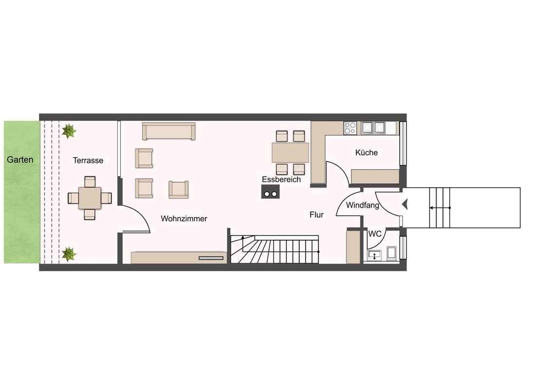 Willkommen in Ihrem neuem Zuhause. Dieses charmante Reihenmittelhaus in massiver Bauweise aus dem Jahr 1979 überzeugt durch seine gepflegte Erscheinung und die durchdachte Raumaufteilung. Es bietet auf mehreren Ebenen ausreichend Platz für die ganze Familie und befindet sich in einer ruhigen, gewachsenen Wohnlage.Im Erdgeschoss erwartet Sie ein großzügiger Wohn- und Essbereich mit direktem Zugang zur Terrasse und dem Garten. Eine vollausgestattete Küche sowie ein Gäste-WC ergänzen das Raumangebot auf dieser Ebene.