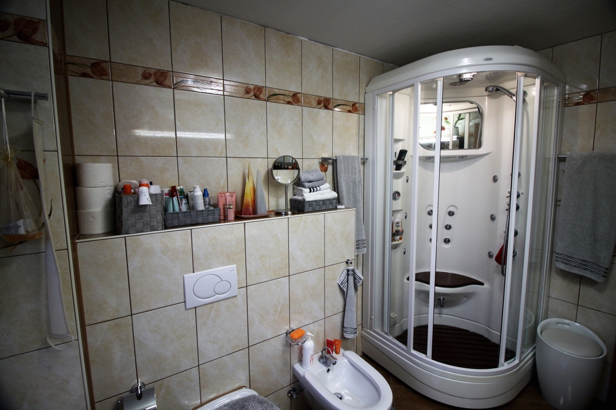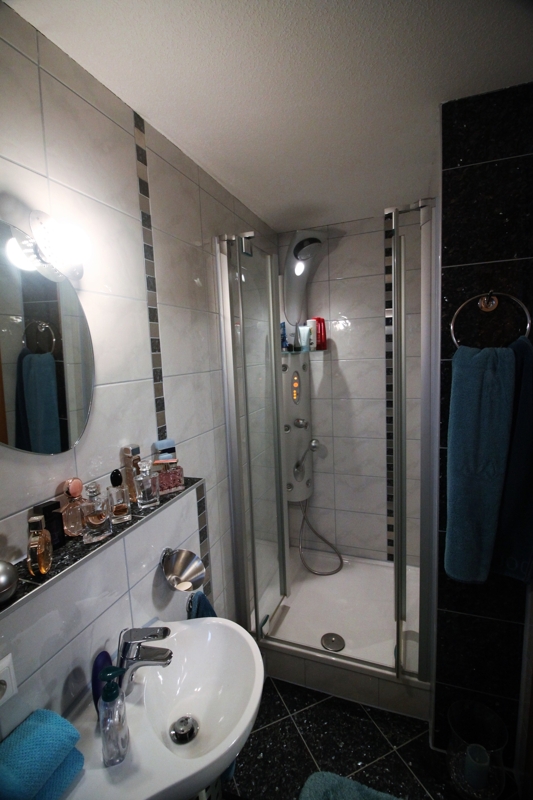 Neben der großen Badewanne mit Sprudelbadfunktion macht eine Comfortdusche mit Dampfbad dieses Bad perfekt. Wohlfühlen leicht gemacht.