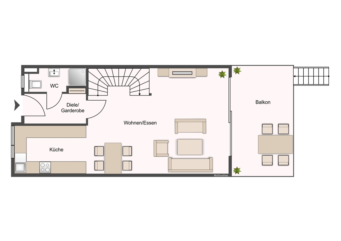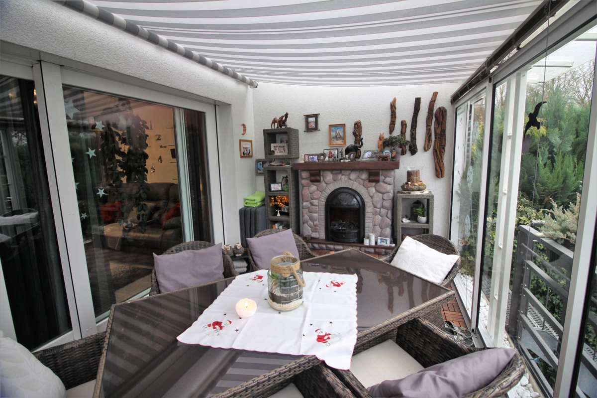 Im Erdgeschoss dieser zweistöckigen Wohnung ist neben einem Gäste-WC mit Wellnessdusche auch der Wintergarten mit einem Zugang zum großen Garten, dieser ist nur Ihnen zugänglich und auch nur von Ihnen nutzbar.