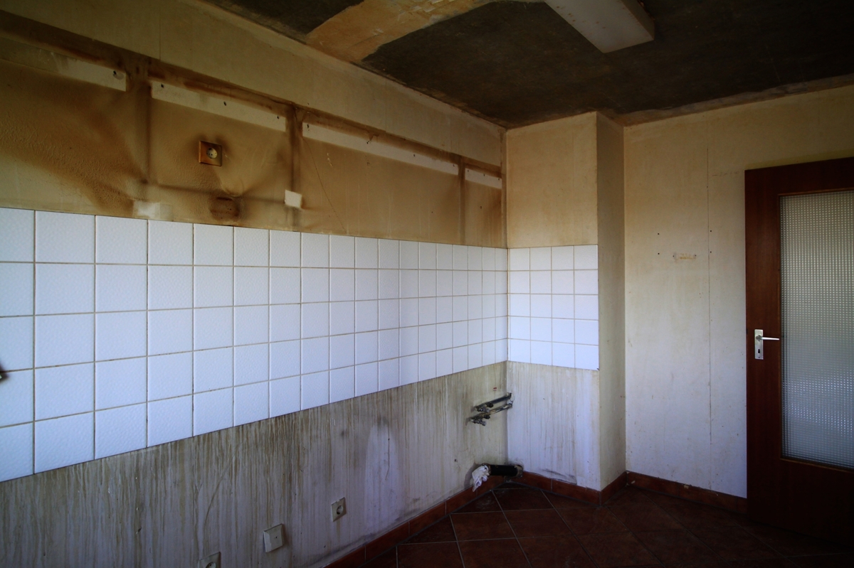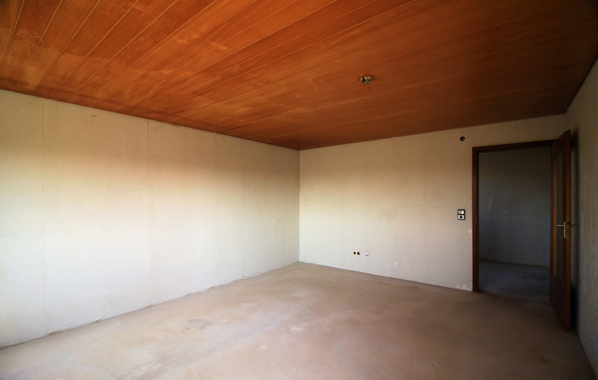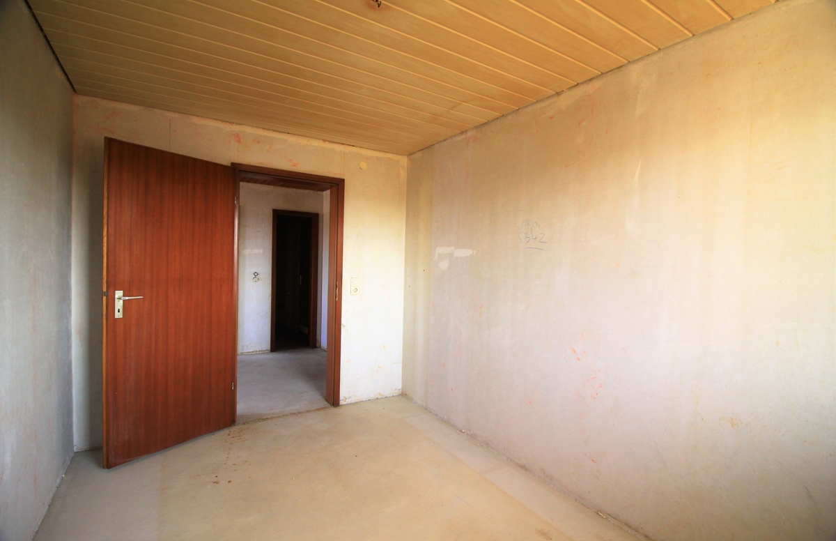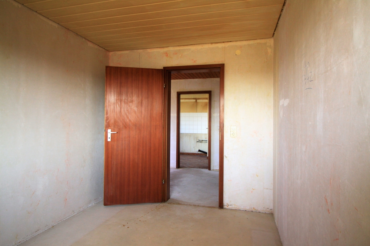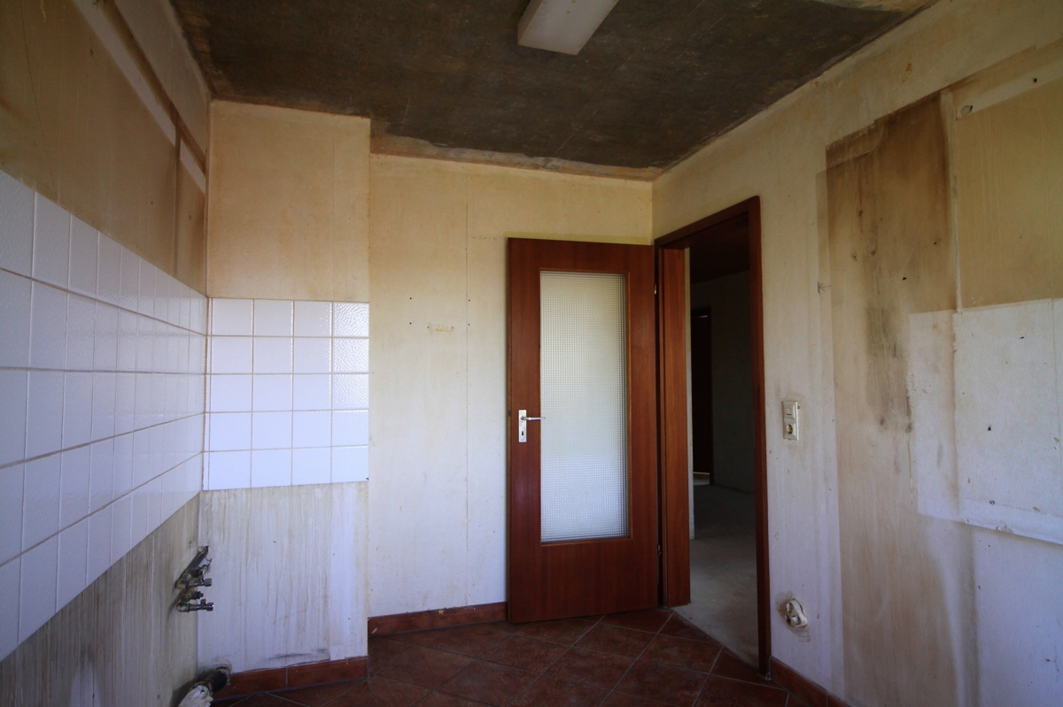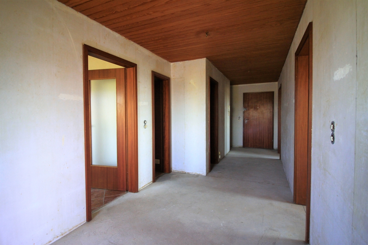 Die Wohnung muss renoviert werden, es sind keine Wand- und Bodenbeläge vorhanden.