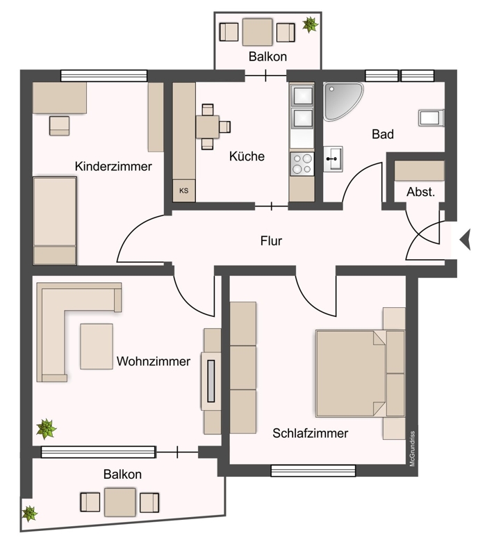 VERKAUFT! Schöne 3-Zimmer-Wohnung im Grünen, 2 Balkone, kernsaniert, 66 m²