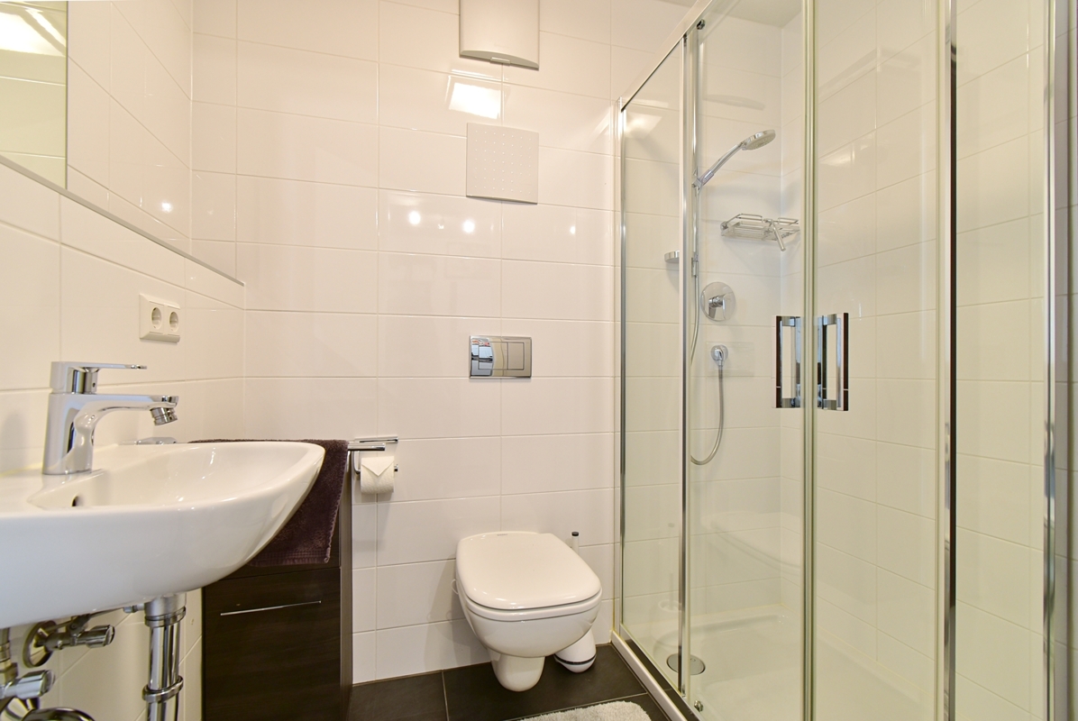 - Hochwertiger Bodenbelag aus Feinsteinzeug Fliesen sowie Laminat in den Schlafräumen