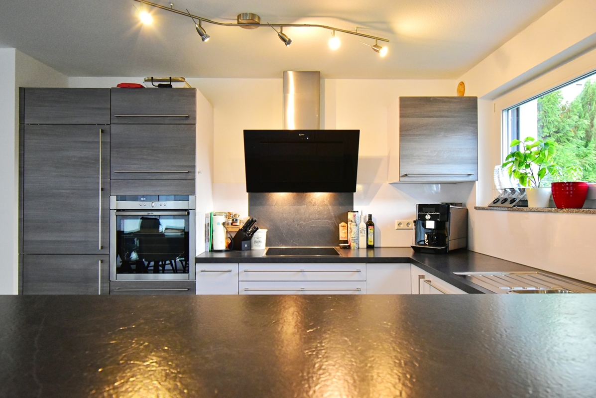 - Hochwertige Einbauküche aus dem Jahr 2014 mit Geräten der Marken Siemens und Neff- Überdachter Balkon mit Süd-Ausrichtung