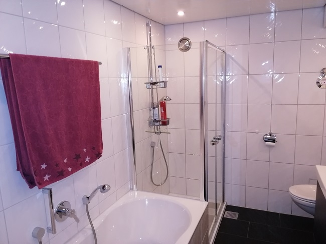 Badewanne, tiefe Duschtasse mit nur leicht erhöhter Kante, WC,