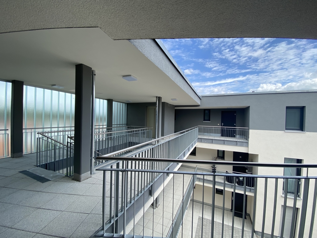Die Wohnung ist des Teil des Neubauprojekts „Neue Mitte Schwaikheim“. Wie der Name des Projekts verrät, sind die Wohnungen zentral in Schwaikheim gelegen.Der Bereich zwischen den sechs Wohnhäusern ist nicht-öffentlich. In diesem Bereich befinden sich verschiedene Spielgeräte und Sitzmöglichkeiten. Unter den Wohnhäusern befindet sich ein Lebensmittelladen mit Bäcker.