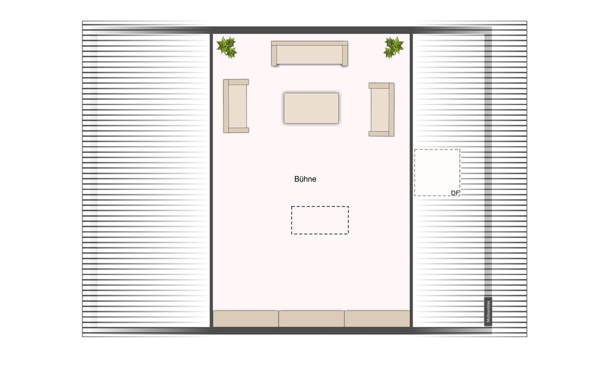 Viel Potenzial bietet die Bühne mit Blick auf die Y-Burg. Mit etwas Kreativität und handwerklichen Geschick können Sie diese mit mehr Leben füllen.