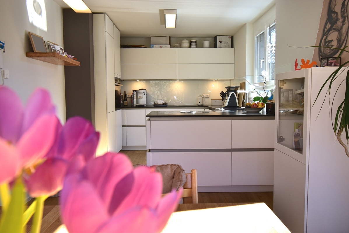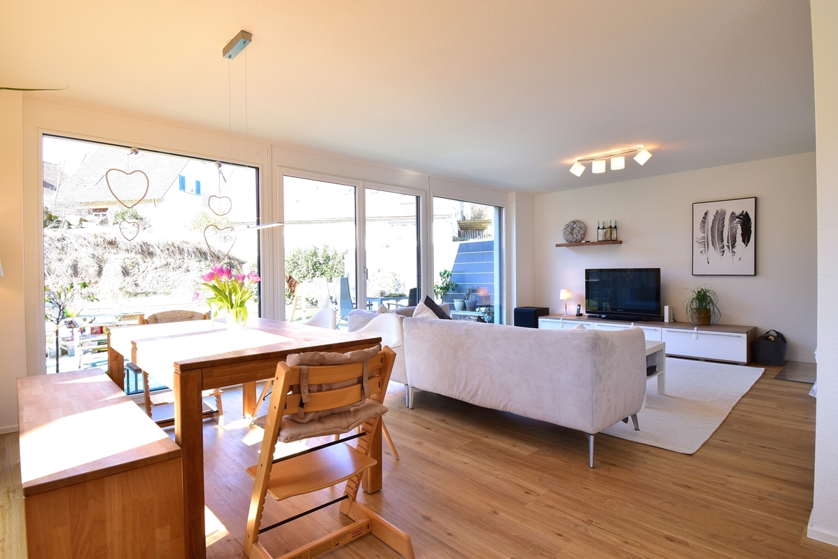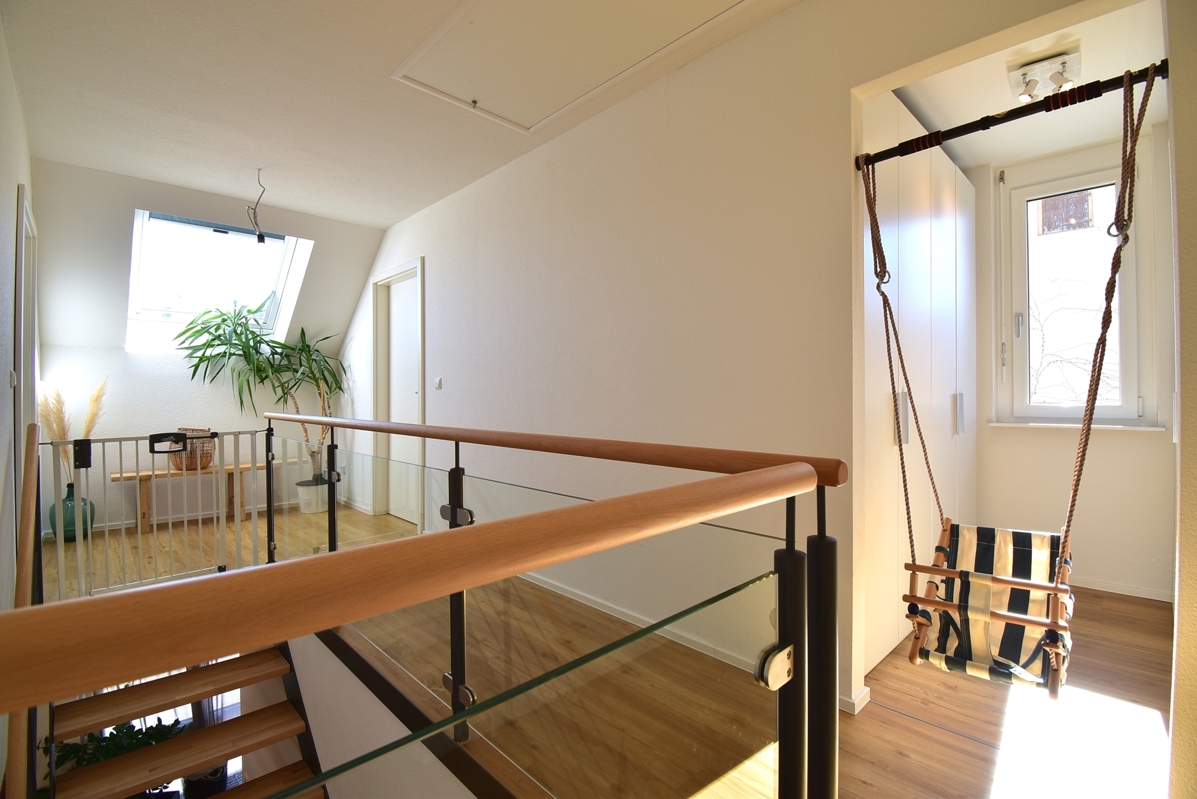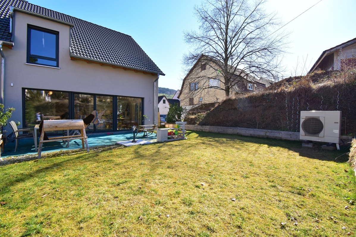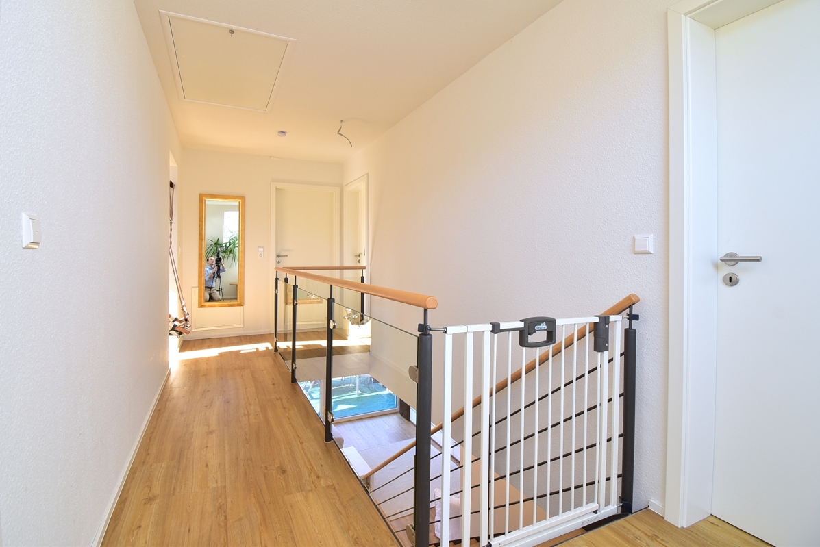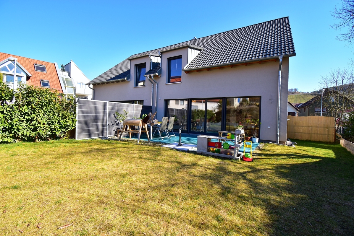 In dieser 2018 erbauten Doppelhaushälfte erleben Sie modernes Wohnen und familiäre Gemütlichkeit mit hochwertiger Ausstattung auf jeder Ebene. Die Böden sind mit Vinyl und Fliesen bedeckt. Die Fenster sind mit einer 3-fach Schallschutzverglasung und einer Kunstoff-/Alu Kombination versehen.Besonderes Highlight, neben dem offenen Wohn-/ Koch-/ Essbereich, ist die komplett verglaste Wand mit Flügeltüren, elektrischen Rolläden und Zugang auf die Terrasse mit Garten.