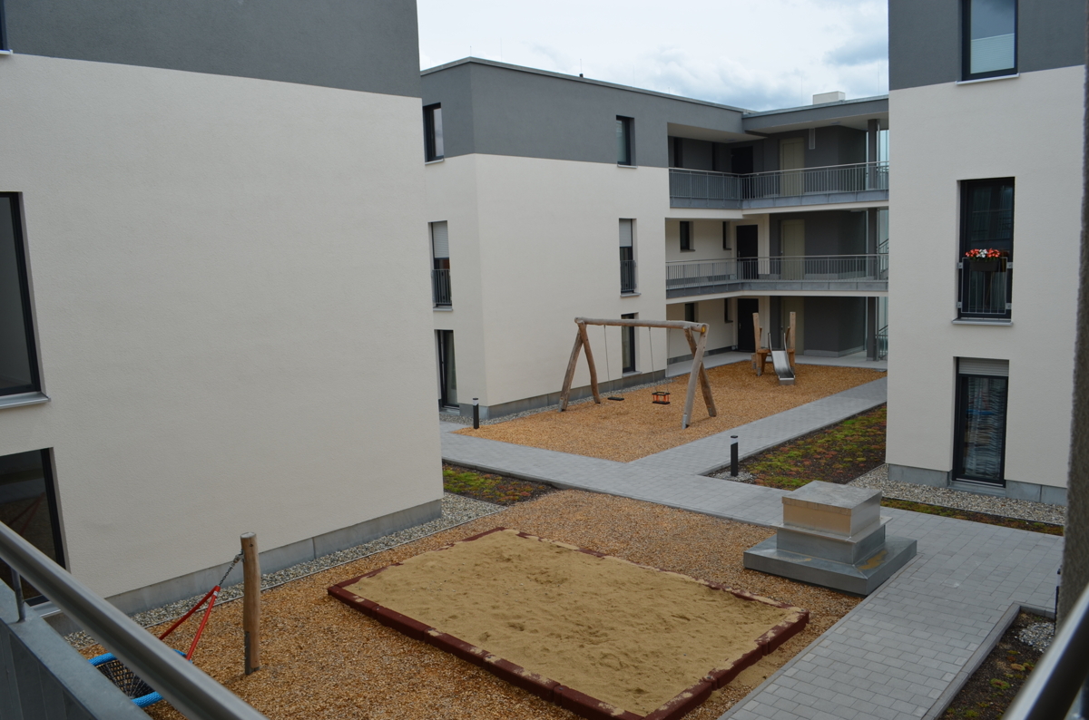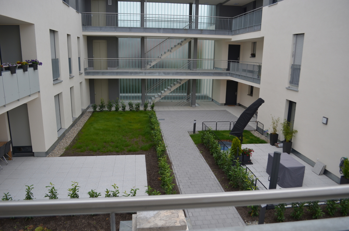 Die Wohnung ist des Teil des Neubauprojekts „Neue Mitte Schwaikheim“. Wie der Name des Projekts verrät, sind die Wohnungen zentral in Schwaikheim gelegen.Der Bereich zwischen den sechs Wohnhäusern ist nicht-öffentlich. In diesem Bereich befinden sich verschiedene Spielgeräte und Sitzmöglichkeiten. Unter den Wohnhäusern befindet sich ein Lebensmittelladen mit Bäcker.