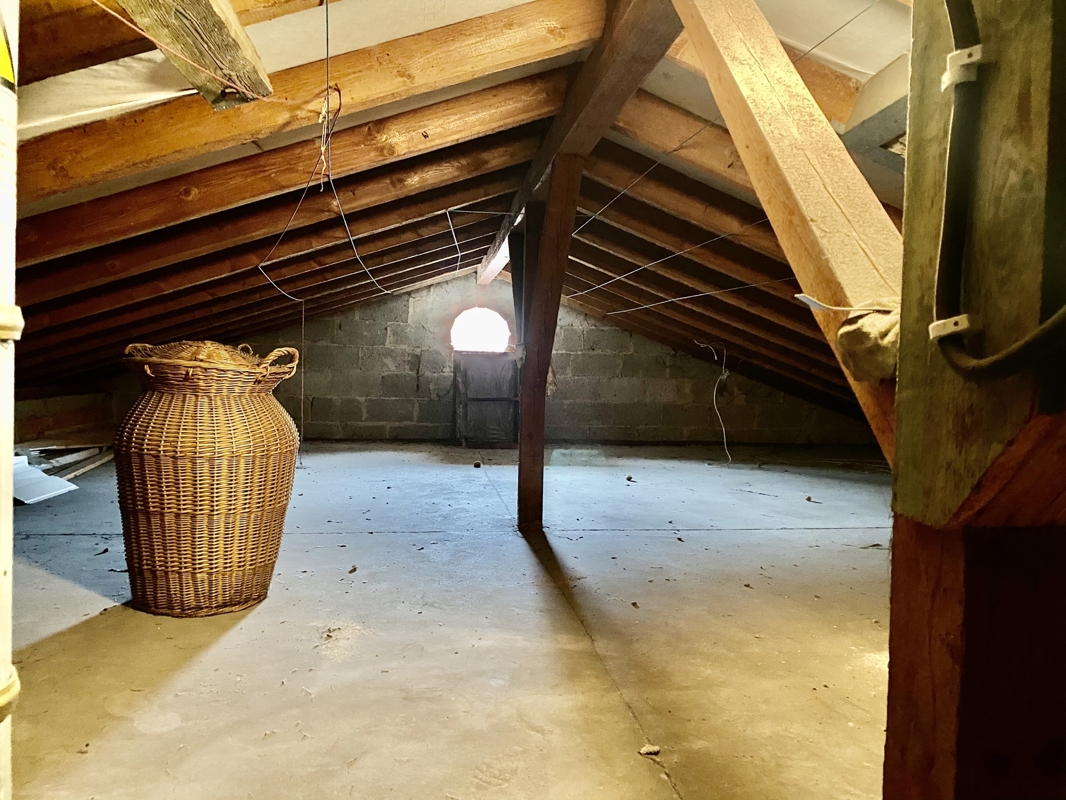 Im Zwischengeschoss gibt zwei Schlafzimmer und einem Westbalkon. Auf der Ebene befindet sich eine Badezimmer mit Badewanne und eine separates WC, sowie eine Vorratsraum. Außerdem gibt es ein kleines Zimmer, dass man zu einer Küche umbauen kann. Das Zwischengeschoss kann als eine Einliegerwohnung ausgebaut werden.