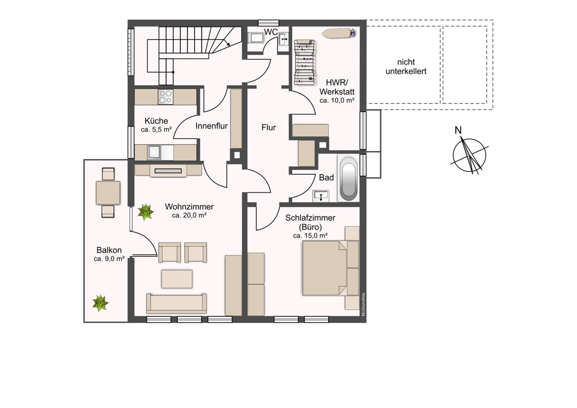 Untergeschoss (nicht in der ausgewiesenen Wohnfläche enthalten):
