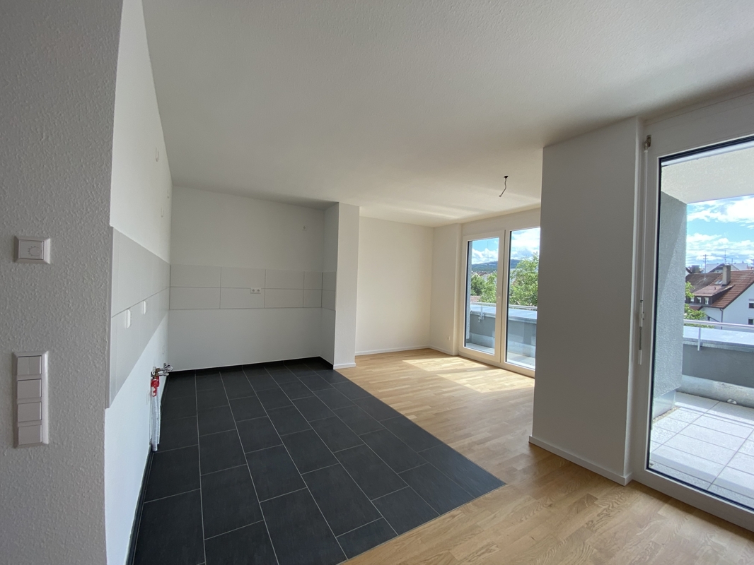 Diese großzügige 3-Zi.-Penthouse-Wohnung besitzt einen Wohn- und Essbereich mit offener Küche. Im Wohn-Essbereich befinden sich drei große Fenster. Die Dachterrasse vergrößert den Wohnbereich. Vor dem Schlafzimmer ist ein Ankleidezimmer vorgesehen.Das moderne Tageslicht-Badezimmer ist mit einer Badewanne, einer begehbaren Dusche, einem Waschbecken und einem WC ausgestattet. Zusätzlich gibt es ein separates WC und einen Abstellraum mit einem Waschmaschinenplatz. Die Wohnung besitzt einen Windfang und großen Flur. Außerdem gibt es einen Kellerraum.