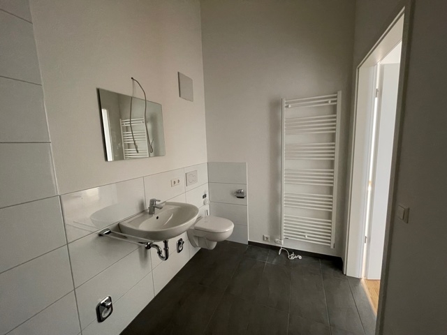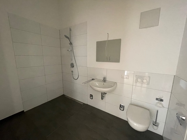 - Bad mit bodengleicher Dusche, Waschbecken und WC