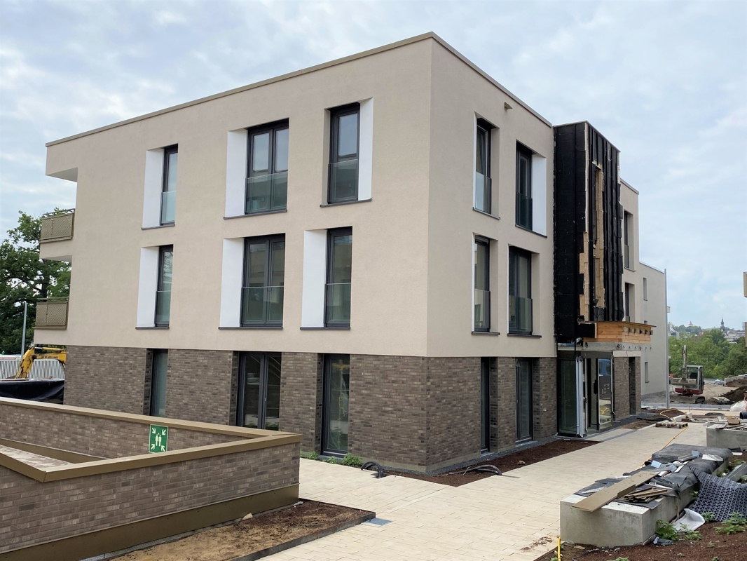 Die Wohnung ist Teil des Neubauprojekts im ehemaligen Krankenhausareal. Der Neubau liegt zentral in der Stadt. Es werden Ein- und Mehrfamilienhäuser mit Miet- und Eigentumswohnungen errichtet.Diese helle 3-Zi.-Wohnung besitzt einen Wohn- und Essbereich mit offener Küche. Der überdachte Südwest-Balkon vergrößert den Wohnbereich. Das moderne Badezimmer mit Tageslicht ist mit einer Badewanne, einer begehbaren Dusche, einem Waschbecken und einem WC ausgestattet. Zusätzlich gibt es einen Abstellraum. Zu der Wohnung gehört ein Kellerraum im selben Gebäude. Diese Wohnung (Nr. 35) befindet sich im Haus 8 und liegt damit am Rand der Wohnanlage. Sowohl vom Wohn- und Essbereich als auch von dem Balkon hat man daher uneingeschränkten Ausblick auf die Stadt.