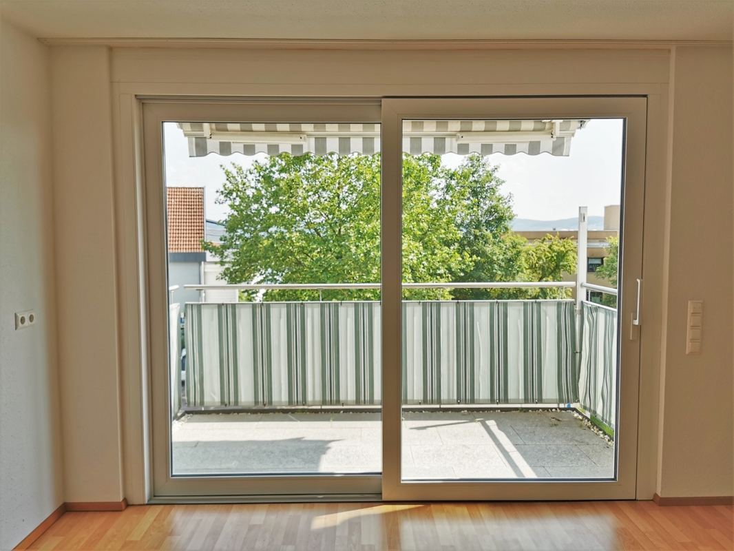 Diese 2-Zimmer-Wohnung hat ca. 57,3 m² Wohnfläche und befindet sich im 1. OG. Es handelt sich hier um eine großzügig geschnittene Wohnung. Das Wohnzimmer mit kleiner Küchenecke erhält durch die großflächig verglaste Fassade viel Licht und gewährt den direkten Ausgang zu dem 5,6 m² großen, überdachten Balkon. Das Highlight der Wohnung ist der Blick ins Grüne und die tolle Aussicht in die Ferne.Ein kleiner, separater Abstellraum befindet sich innerhalb der Wohnung. Außerdem gehört ein separater Kellerraum im UG dazu. Im UG befindet sich auch ein gemeinsamer Raum für die Waschmaschinen und Trockner. Es gibt aber auch die Möglichkeit, eine Waschmaschine im Bad aufzustellen.