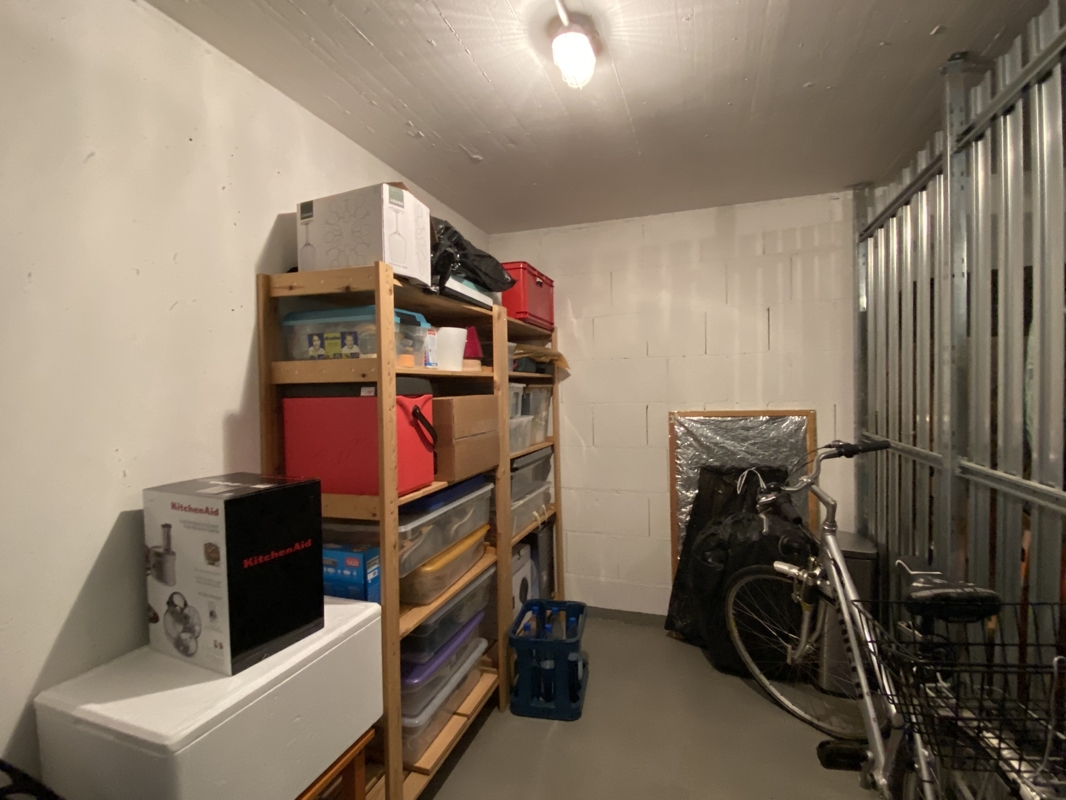 Zur Wohnung gehört ein separater Kellerraum, sowie ein gemeinschaftlicher Trockenraum und ein gemeinschaftlicher Fahrradraum. Zu der Wohnung gehört ein offener Tiefgaragen-Stellplatz mit direktem Zugang zum Treppenhaus.