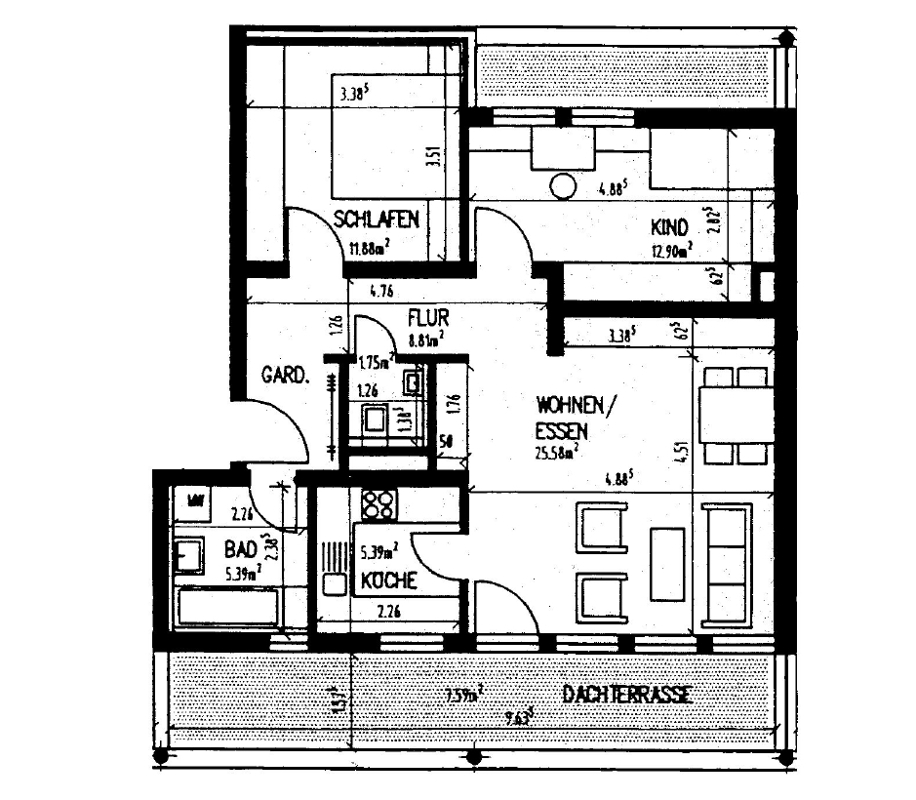 In ruhiger Lage, im Waiblinger Wohngebiet „Korber Höhe II", befindet sich diese schöne und helle 3-Zimmer-Wohnung. Es ist die oberste Wohnung eines Mehrfamilienhauses, aber leider ohne Fahrstuhl. Ein Hausmeisterservice sorgt hier für bequemes Wohnen. Sie erreichen alle Geschäfte des täglichen Lebens, Sportanlagen, sowie Kindergarten, Schulen und Bushaltestelle bequem zu Fuß. Über die 4-spurige B 14 ist eine gute Anbindung nach Stuttgart gegeben.Ausstattung: