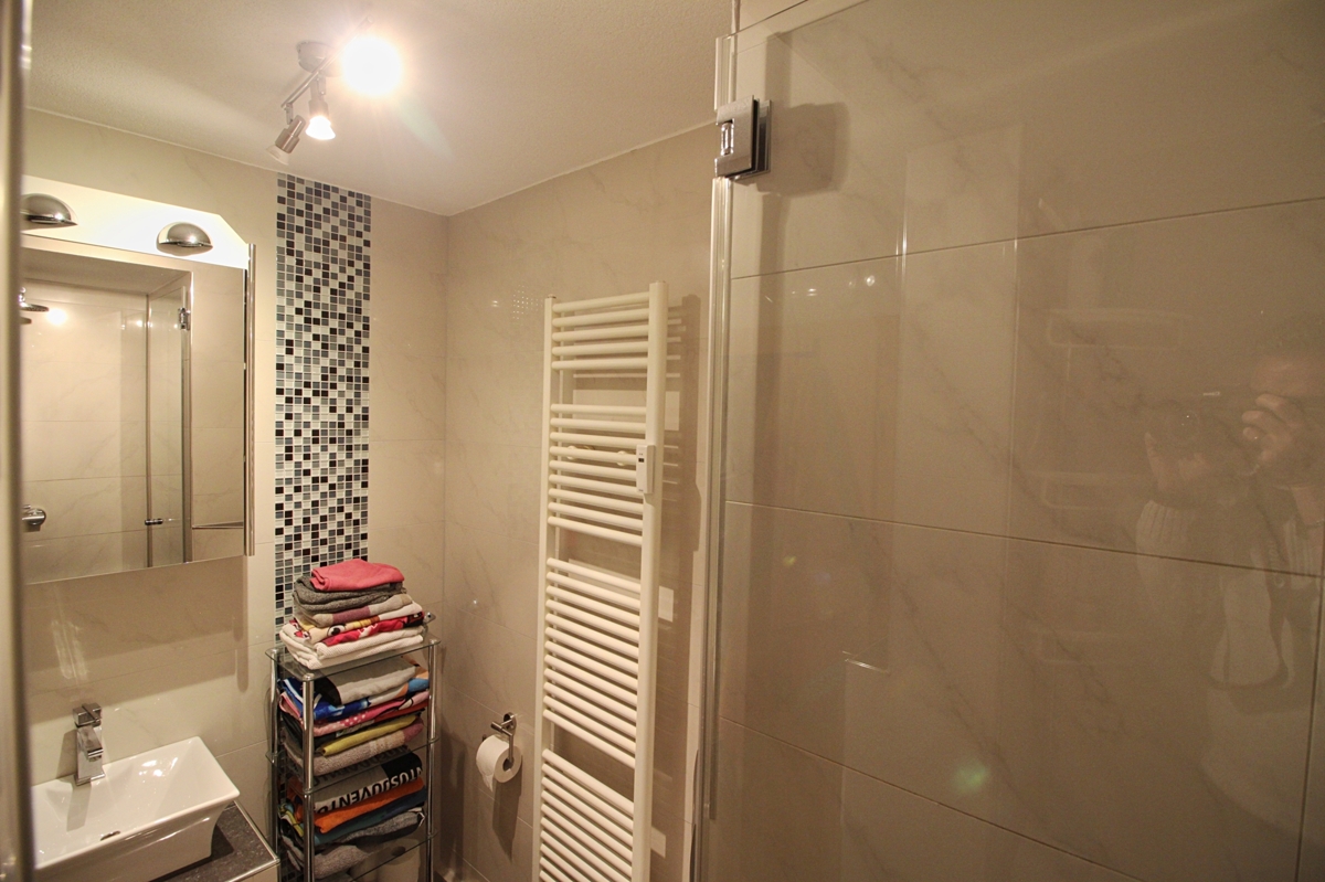 Drei weitere Zimmer befinden sich im anderen Flügel der Wohnung. Dazu wurde auch hier ein innenliegendes Badezimmer eingerichtet, das Highlight hier ist die große Dusche, ebenso im südländischen Stil.