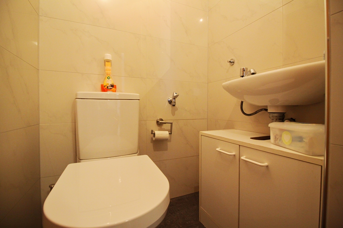 neben dem Abstellraum gegenüber der Küche, ist in dem Flurbereich auch ein Gäste WC verbaut.