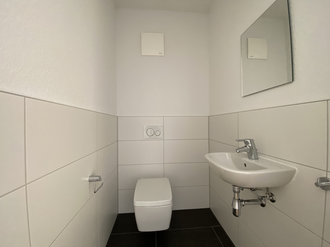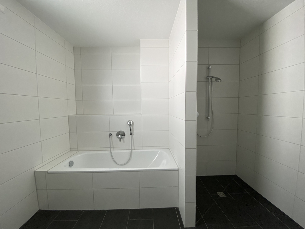 Diese 4-Zi.-Wohnung besitzt einen Wohn- und Essbereich mit offener Küche. Es gibt eine Einbauküche, ohne Kühlschrank und ohne Geschirrspülmaschine. Im Wohn-/Essbereich befinden sich bodentiefe Fenster. Die Loggia vergrößert den Wohnbereich.Das moderne Tageslicht-Badezimmer ist mit einer Badewanne, einer begehbaren Dusche, zwei Waschbecken und einem WC ausgestattet. Zusätzlich gibt es ein separates WC. Es gibt zwei Abstellräume, in einem der Abstellräume gibt es einen Waschmaschinenplatz. Außerdem gibt es einen Kellerraum.