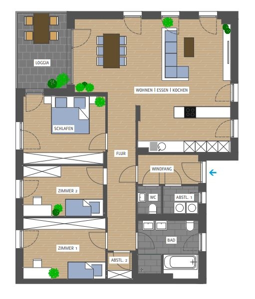 Moderne 4-Zimmer-Wohnung mit Loggia