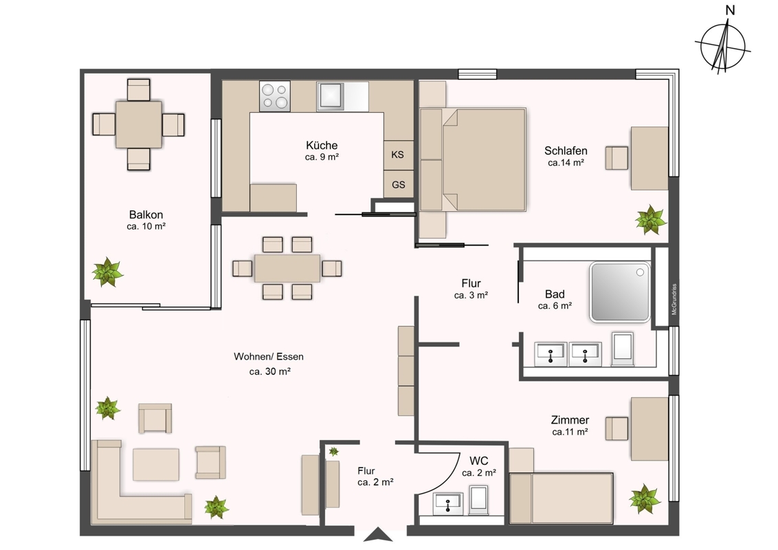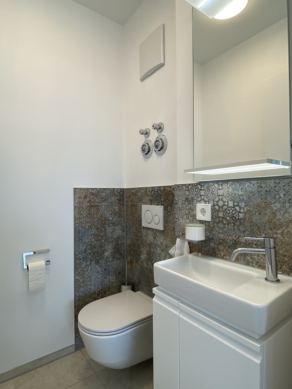 - separates Gäste-WC (ca. 2 m²) mit Waschbeckenunterbau und beleuchteter Spiegel