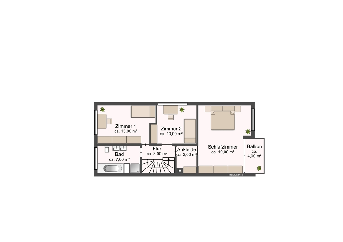 Balkon (ca. 4 m² Grundfläche) (nur zu 50 Prozent in die Wohnfläche eingerechnet, ca. 2 m² Wohnfläche)
