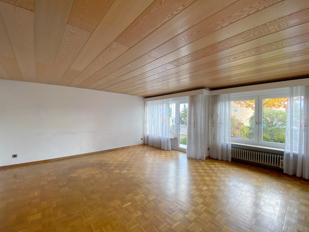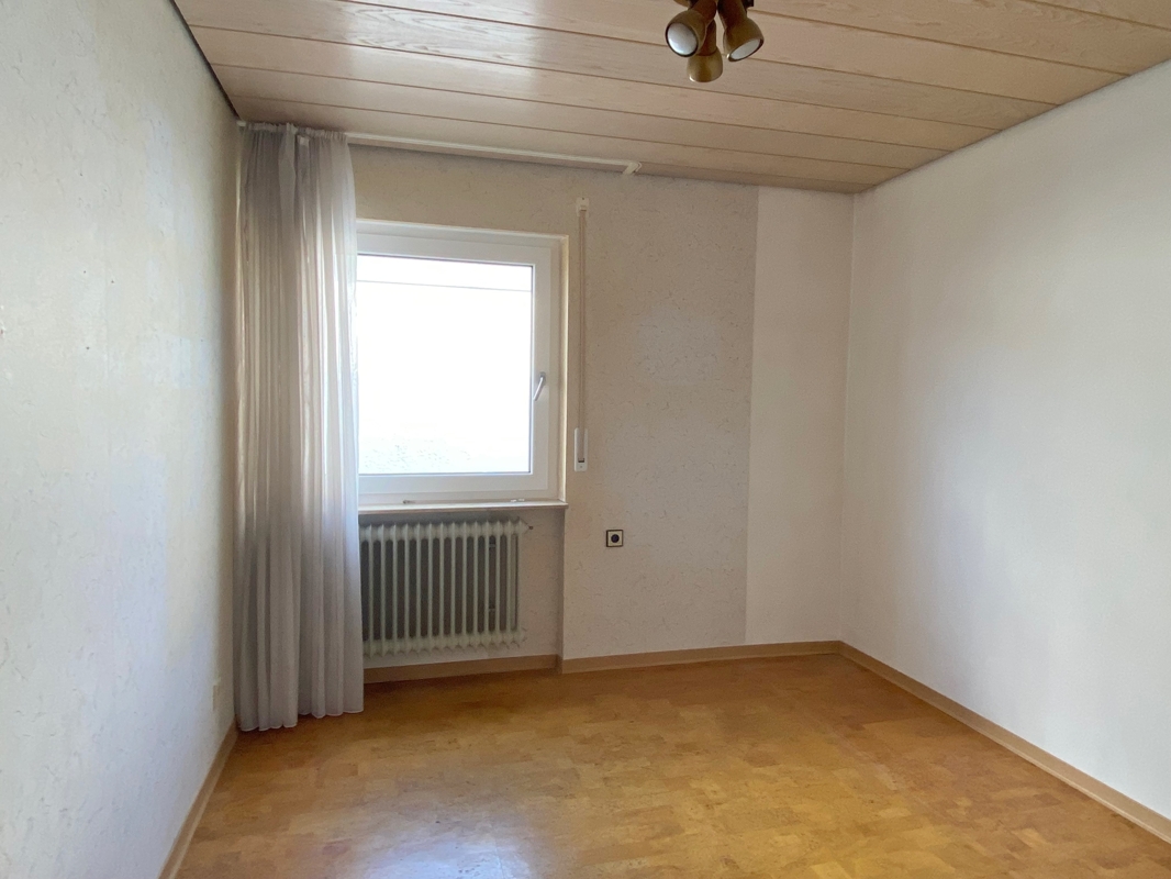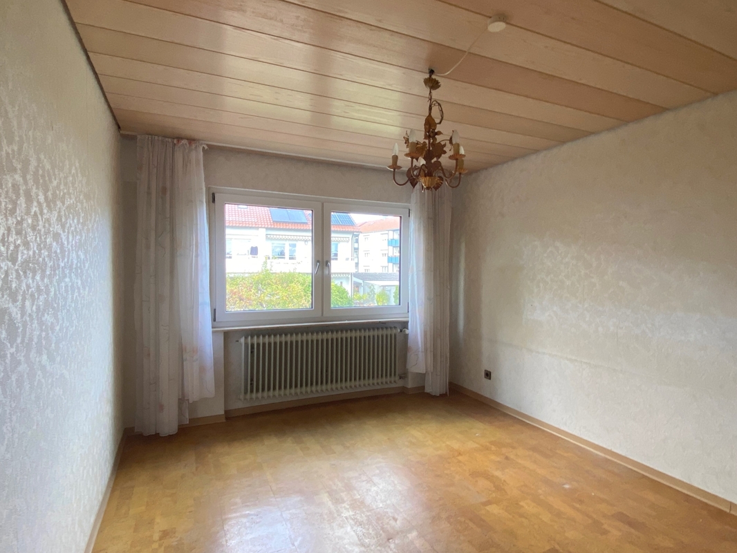 Im Obergeschoss befinden sich drei weitere Zimmer, welche aufgrund der geräumigen Größe individuell genutzt werden können. Vom großen Zimmer hat man den Zugang zum Süd-Balkon mit Markise. Auf dieser Ebene gibt es ein Tageslicht-Badezimmer mit Badewanne, Dusche, zwei Waschbecken und einem WC. Der Flur hat durch ein Oberlicht Tageslicht.