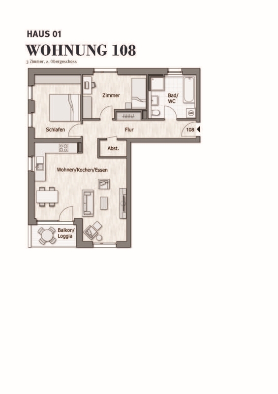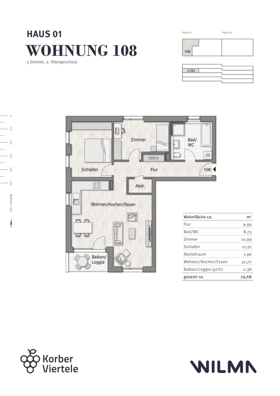 Zu dieser Wohnung kann auch die daneben liegende Wohnung WHG 109 mit ca. 39 m² Wohnfläche erworben werden.