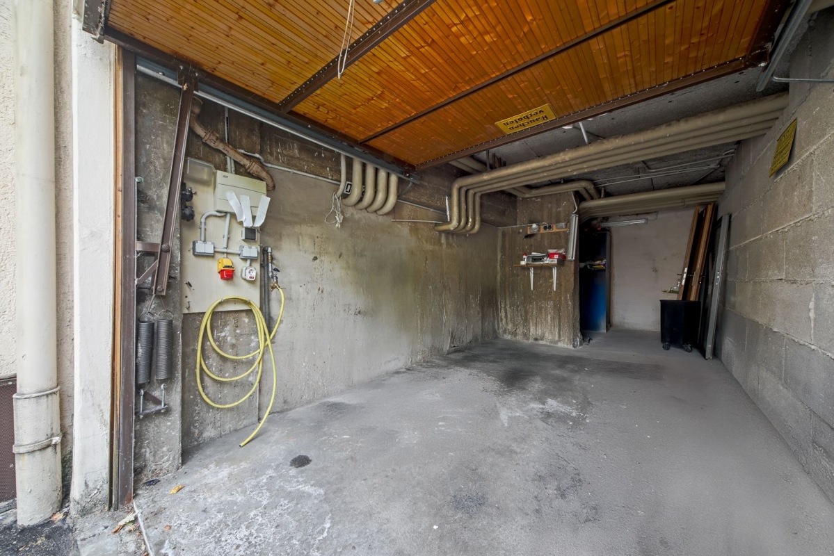 Die Einzelgarage ist mit Wasser und Strom ausgestattet. Der vorhandene 400V/16A Anschluss bietet genügend Kapazität für eine Elektroladestation in der eigenen Garage. Vor der Garage kann ein weiteres Fahrzeug geparkt werden.